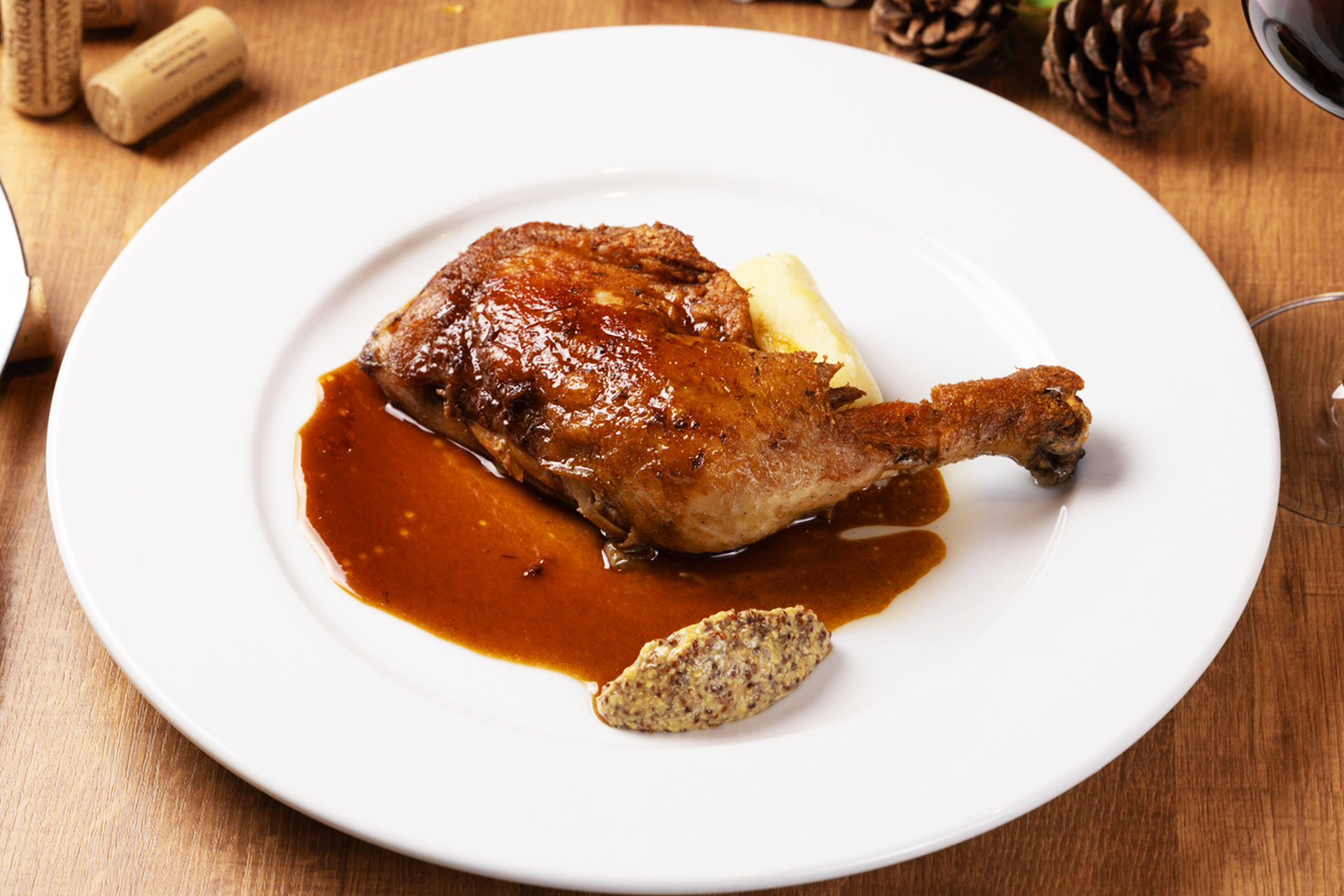 「骨付き鶏モモ肉のコンフィ」「半熟チーズオムレツ ~デミグラスソース~」など、おつまみからメインディッシュまで、こだわりの逸品を幅広くご用意しております。